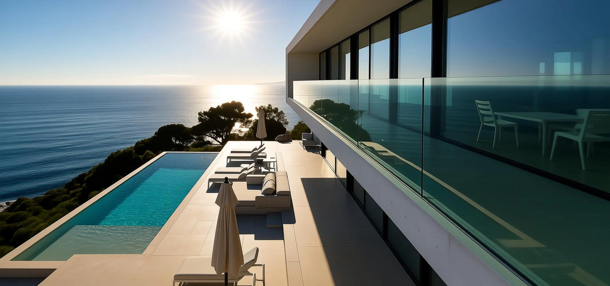 Une architecture contemporaine audacieuse face à une nature méditerranéenne, dessinée par la ligne de la mer et la rigueur d’une géométrie minimale.